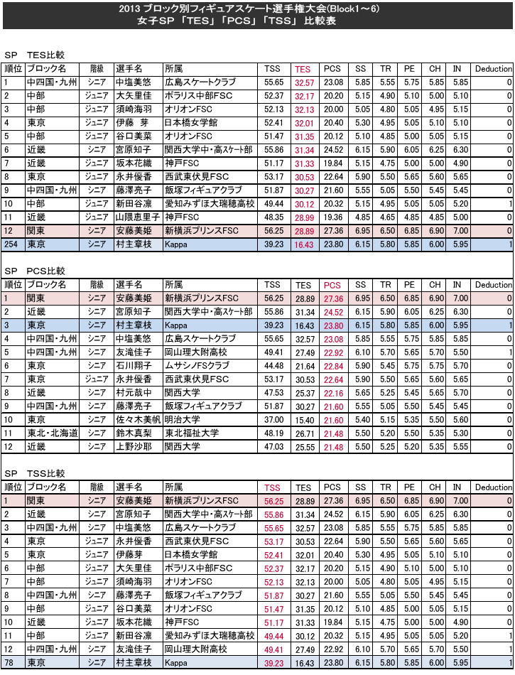 各ブロックの成績をすべてまとめてみました。