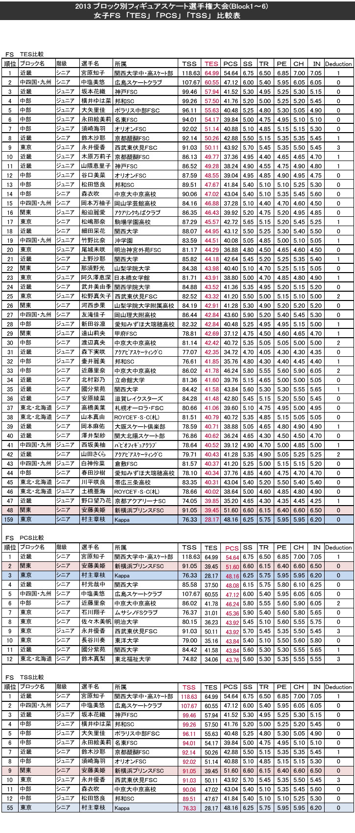 それぞれ、TSS順、TES順、PCS順に並べ替えた表を添付しました。