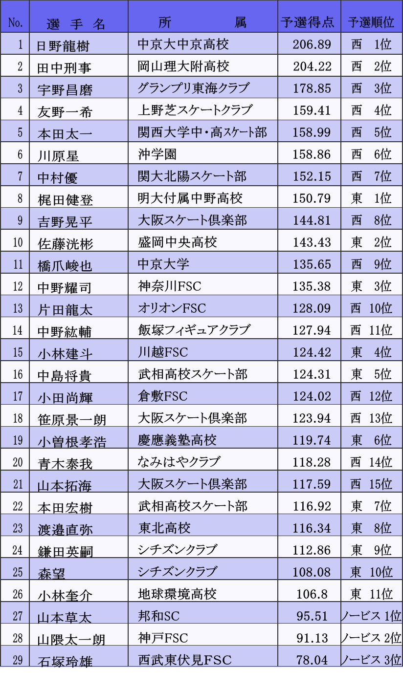 この表から、全日本ジュニア選手権の予想をしてみてもいいかもしれません。