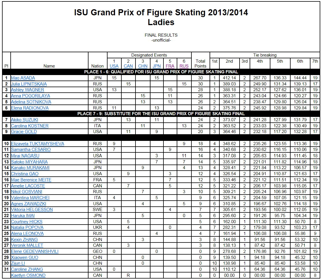 コストナー選手はファイナル進出なりませんでした。