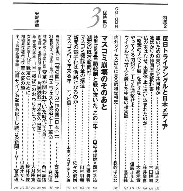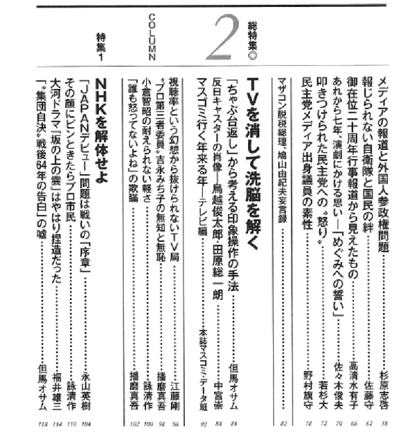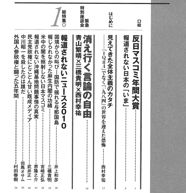 また、「反日マスコミの真実2010年版」の目次が公開されていたのでご覧ください。